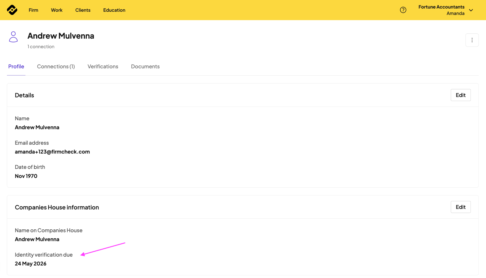 When you add a company from Companies House or use pull latest, the Companies House Verification due date is now automatically added to related individuals’ profiles.