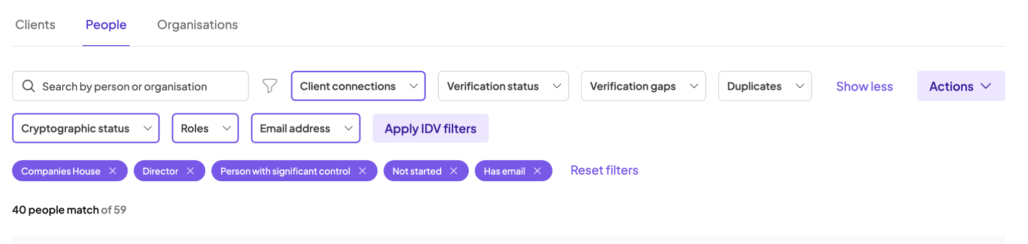 We’ve also added a Roles filter to the People tab. You can now filter by Directors, PSCs, and other roles so you can target the right people when running bulk ID verification workflows.